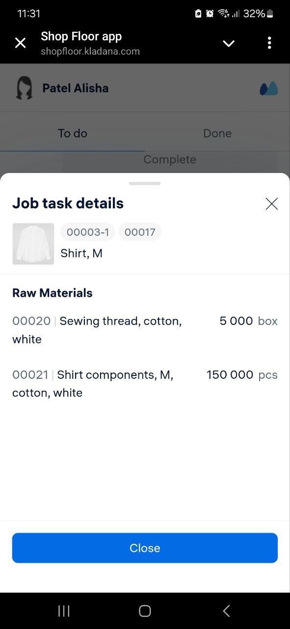 The Shop Floor App enhances manufacturing efficiency with features designed for both managers and employees. Managers can assign and track tasks, monitor production stages, and manage labor costs with detailed earnings summaries. Employees can mark tasks as completed, check required raw materials and components, receive instructions, and view their earnings within a specific timeframe. Additionally, QR codes with Bill of Materials details can be printed, streamlining the management of raw materials and semi-finished products, making workflows more organized and efficient.
